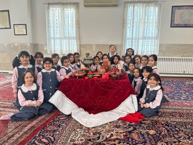 مراسم شب یلدا آلبوم عکس مراسم شب یلدای دبستان  – پایه ی اول با یک ابتکار زیبا حرف ی را در فضای زیبای یلدایی تدریس کردند. – پایه ی دوم به قصه گویی در مورد یلدا پرداختند.